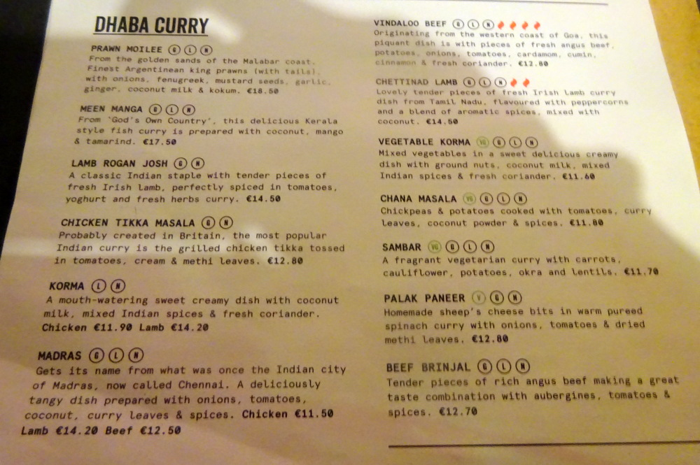Lunch Express (€10.00) may well have been good value, however, Hector was here for one Curry only – Chettinad Lamb (€14.50). Having extolled the joy of this Curry at Banana Leaf (Glasgow) last week and then having subsequently prepared my own Chettinad Masala, the Flavours of South Indian Cuisine are very much to the fore presently in Hector’s World.