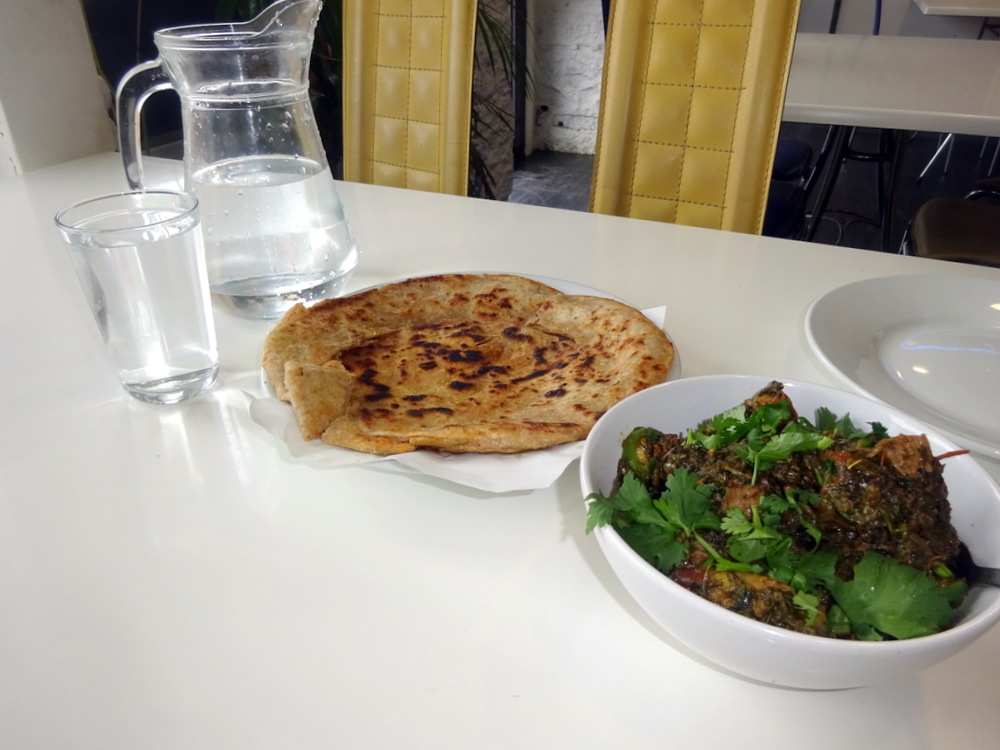 Is Palak Gosht (£6.50) available? – Qaiser confirmed this was possible. A Paratha (£1.80) would complete the Order. A Paratha for a change.