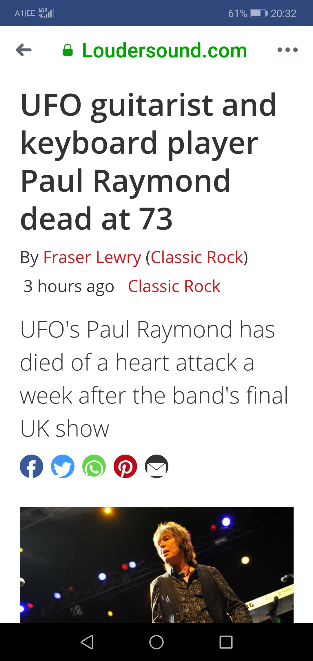 In the middle of our excellent evening at The Brick Makers, news flashed up on the still trusty Huawei that Paul Raymond of – UFO – had joined – The Immortals. Marg and Hector saw Paul last week in Glasgow performing on the final – UFO – Last Orders – tour.
