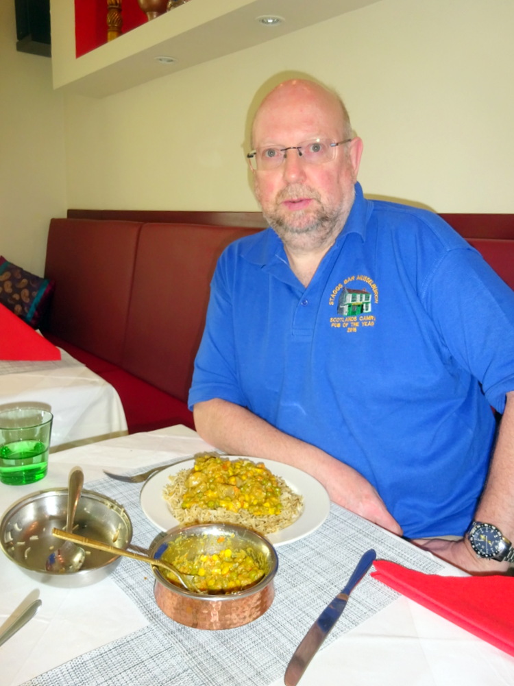 Marg found both Cauliflower and Potato together in the Pakora which was quite novel. That she likened this Pakora to the Akash (Helensburgh, Scotland) is as positive as Marg could be. Not one piece came Hector’s way, though the Mango Lassi was sampled, excellent.