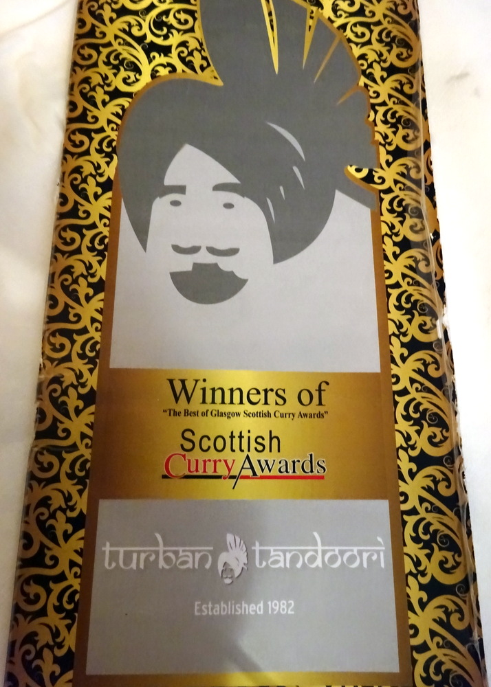It’s Wendy’s birthday, Wendy had vouchers for a Curry House in Giffnock. Giffnock has a Glasgow postal address but is actually in Renfrewshire. Confusing? Especially so when Giffnock is classed as being in – Glasgow – every time a certain Curry House wins an Award. Who wins awards? Marg and Hector experienced the Curry that was served at The New Turban Tandoori (2 Fenwick Pl, Giffnock, Glasgow G46 6UF) nine years ago in the first year of Curry-Heute. The Curry was decidedly poor. Why have so many Awards gone to a Giffnock Curry House in recent years?
