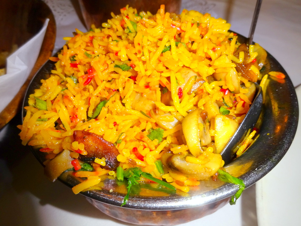 Marg – I really enjoyed the mint and fresh flavour of my Curry. It was unusual for me. Very tender meat, and went very well with the Rice, which was full of – things.