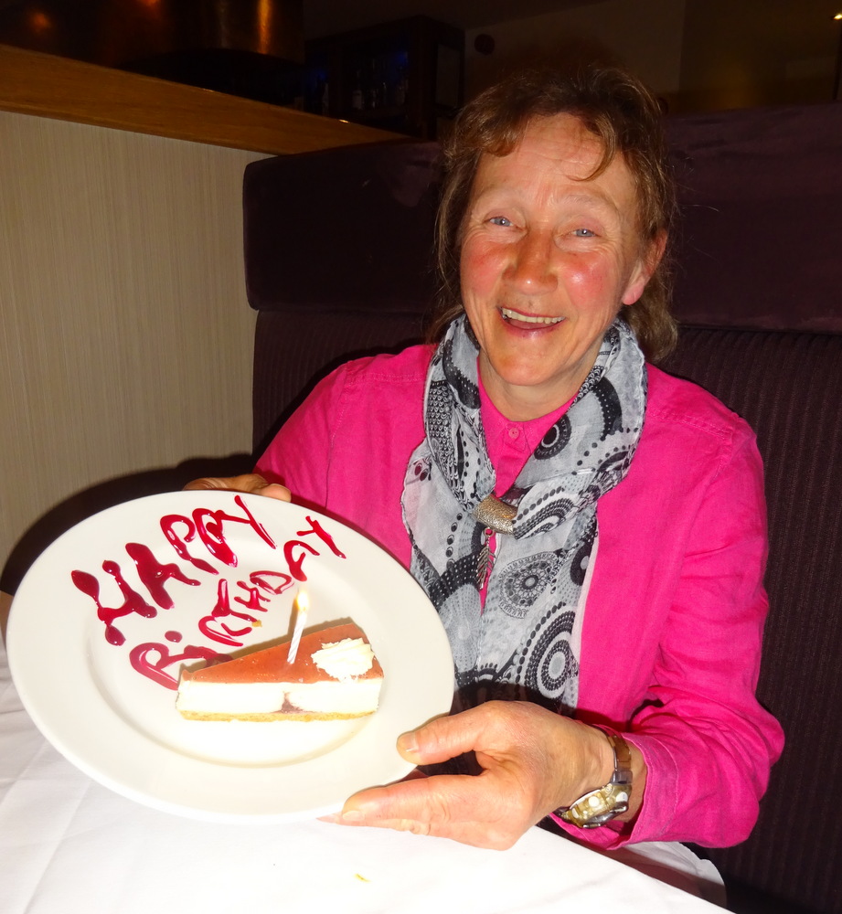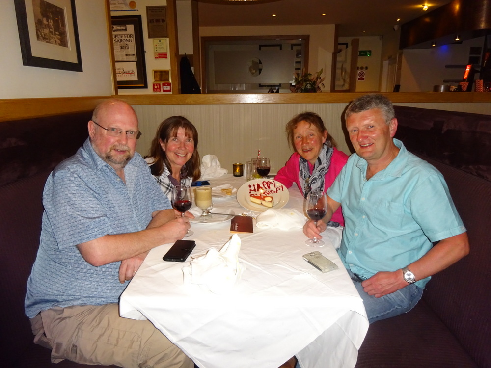 I had told Wendy and Peter on our arrival at Turban Tandoori that as Hector had never been here, they should not expect any special treatment as experienced at Akbar’s (Glasgow) for Marg’s birthday. Suddenly we were being offered Birthday Drinks on-the-house. Three large glasses of Red Wine were promptly produced. Marg would have to wait a bit for her extra hot Latte.