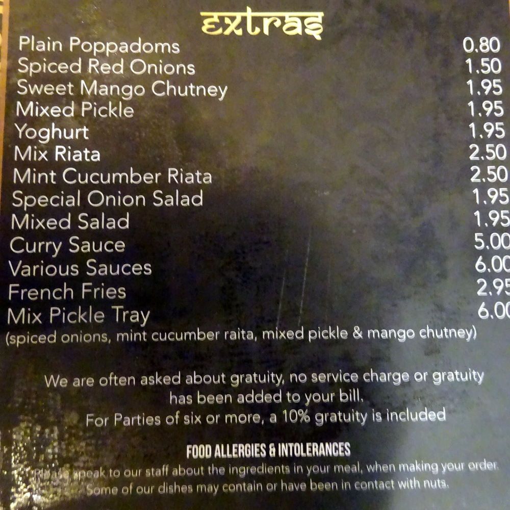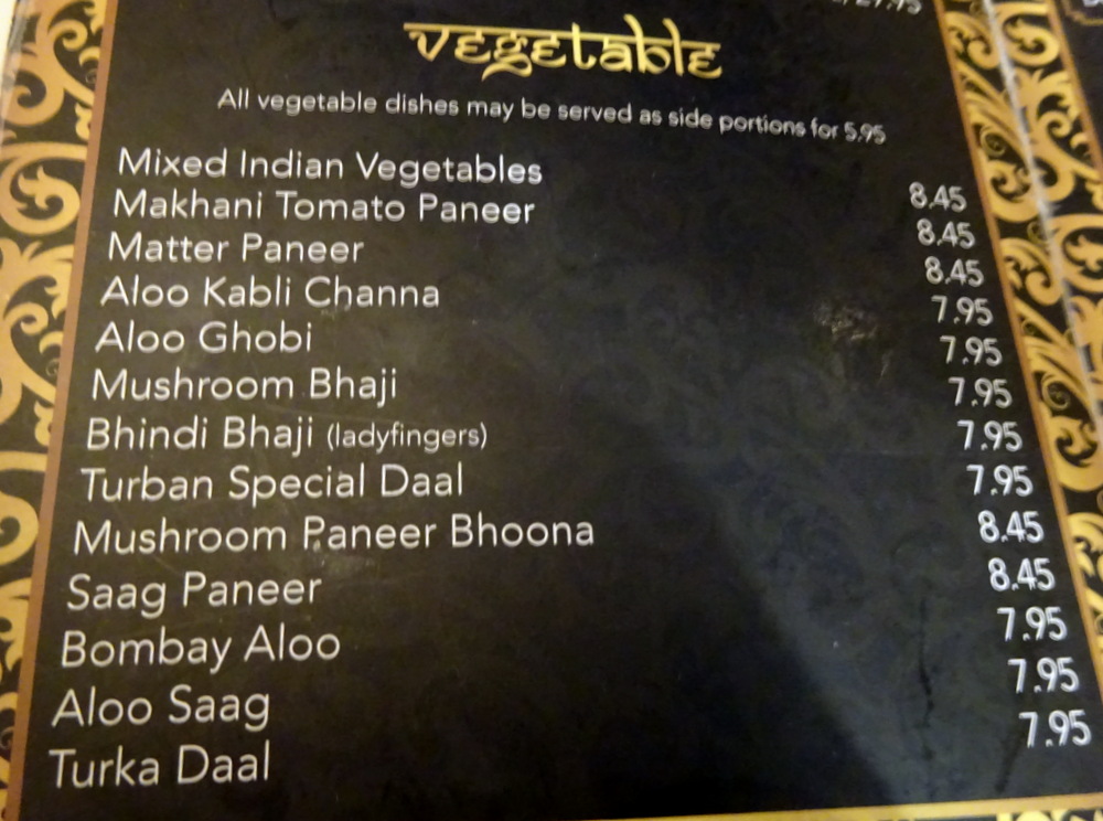 Turban Tandoori – Menu extracts