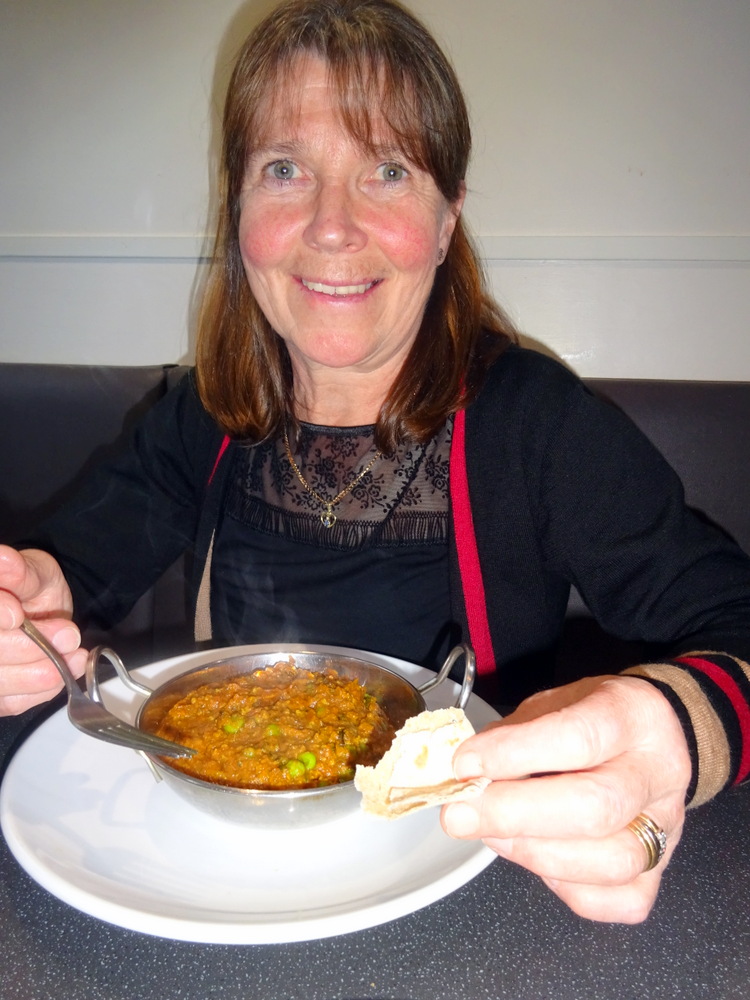 Marg thoroughly enjoyed what she ate, the Spice was not too much for her, she loved the – herbs. Methi.