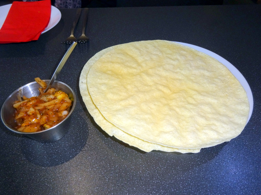 The solitary Chapati did not look much, it was a perfect match for what Marg ate. The Paratha was a disappointment. For the second time in a few days I have to question if this was actually a Paratha and not juts a thick Chapatti. There was no sign of Layering, and it was certainly not – Flaky. This just looked like an Oatmeal Chapatti.