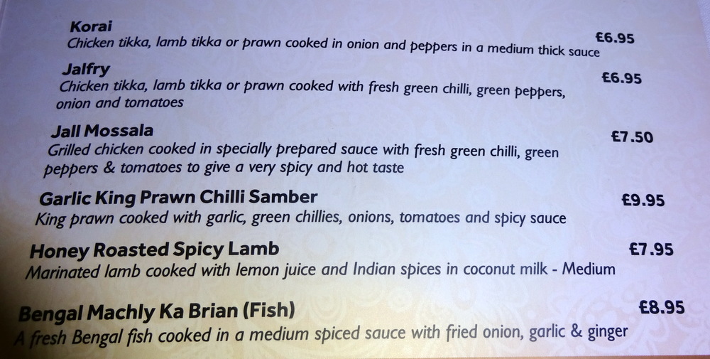 After a splendid afternoon spent at Anchored in Worthing it was time for Curry-Heute, Mahaan was nearby. On arrival, they told us we would have to wait half an hour. A couple of young chaps faced with the same dilemma led us across town to their favoured alternative – Le Spice. The song remained the same.