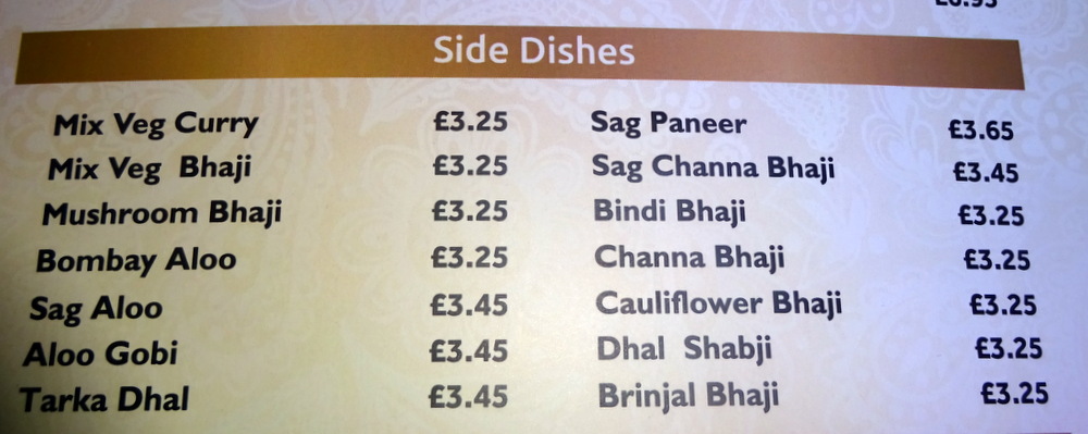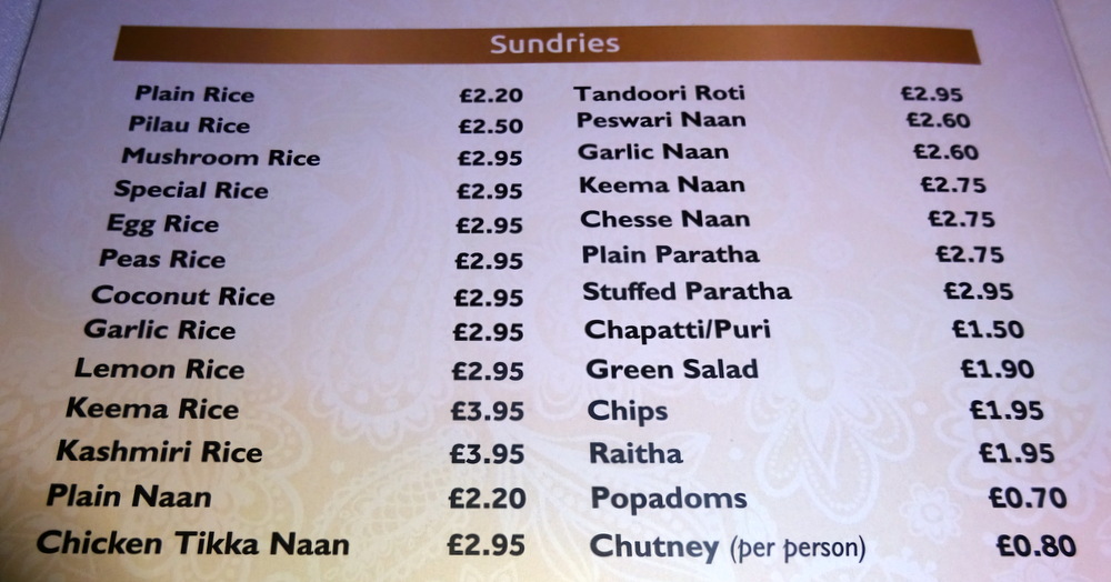£20.70 Achari was confirmed. Why more for the Naan without Meat? Apart from that, Restaurant prices comparable to many a Curry Cafe.