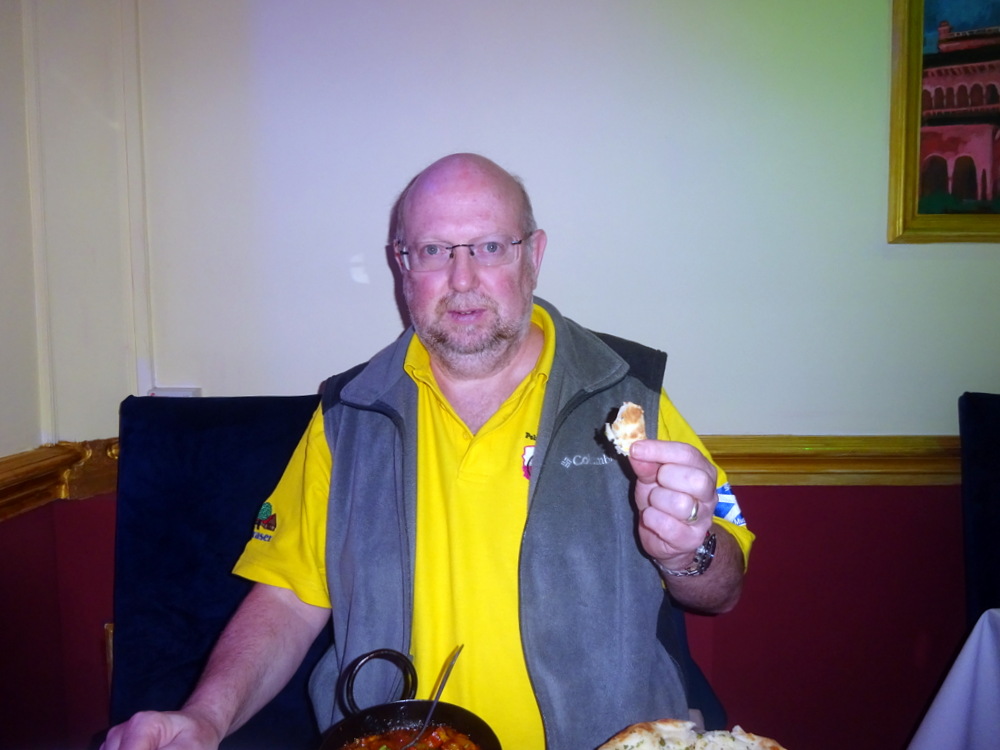 Plenty of Keema – remarked Clive with reference to his lightly fired Keema Naan. Served whole and round, the Naans did appear to be a bit on the small side when they arrived. The size proved to be sufficient, as much as one could manage in comfort. Fluffy, without being doughy, the Chilli and Coriander Naan was thoroughly enjoyable. This Naan was an ideal accompaniment for the Special Achari whose appearance suggested that Rice may have been more suited. Having devoured the Meat, the remnants of the Naan worked well with the mass of Mushy Vegetables which was left in the Achari.