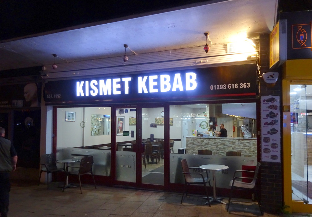 A third Croydon venue which potentially appealed had recently gone out of business. There would be no Croydon Curry-Heute. It was back to Crawley for a late night Kebap at the only Kebab House which features in this Blog which does not serve Curry – Kismet Kebab (3 Broadwalk, Crawley, RH10 1HJ, England).