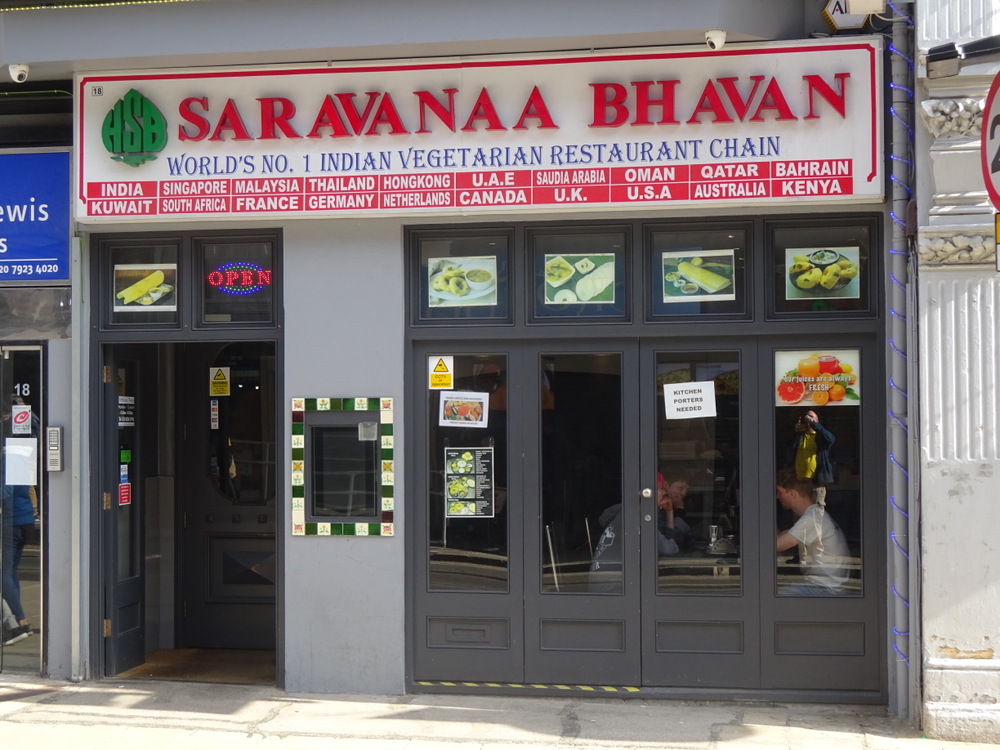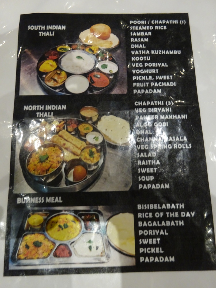 Across the road from what may well be the best Wetherspoon’s in the UK lies Saravanaa Bhavan (18 George St, Croydon CR0 1PA), a Vegetarian multinational chain. The exterior suggested a small Curry Cafe, it turned out to be the proverbial Tardis. We were greeted and led to a table well into the interior of the premises. The majority of the diners appeared to be family groups having Thali.