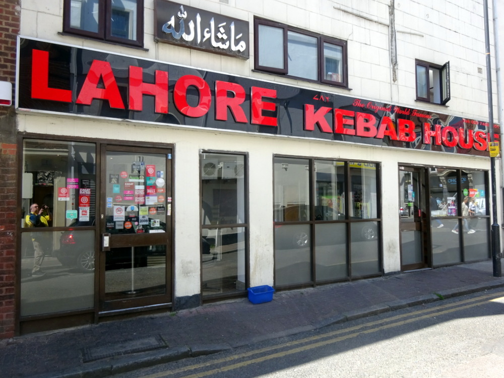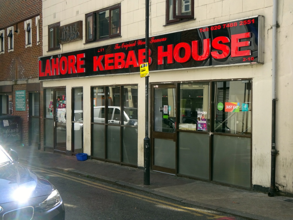 Google Maps had us take the Tube to Aldgate from Farringdon, not the best way to get to Lahore Kebab House (2-10 Umberston St., Whitechapel, London, E1 1PY, England) as it turned out. Hector sensed that Clive was questioning the chosen path through residential areas to reach Umberston St. We reached the Restaurant from the rear instead of walking along Commercial Road, all very strange. Even stranger is the fact that the last time I came to Lahore Kebab House I also had a Kebap in Crawley the night before.