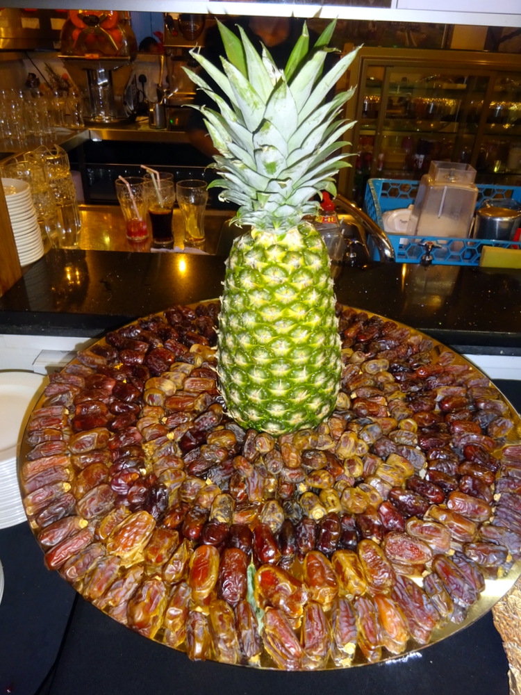 Suddenly, The Village was full, or near enough. Chaps at a nearby table had piles of Starters on three plates, the rest of their Company was who knows where. People were waiting, as in sat, but not eating. At 21.49 there was a musical broadcast, I never knew The Village had a P.A. System. Clearly a prayer, this signalled the – off – for those who had yet to break the fast.