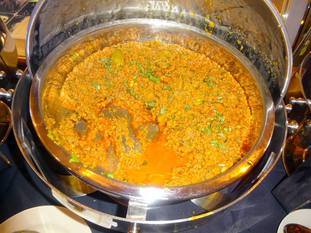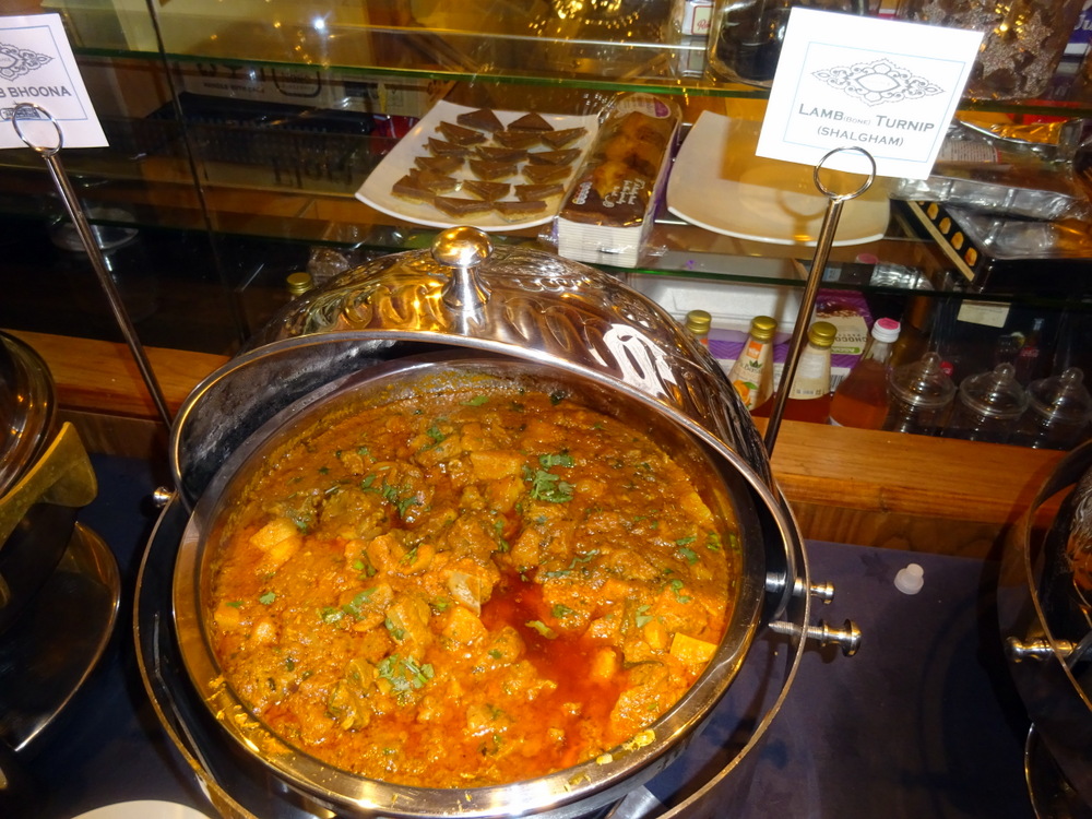 I did a recce to see what Mains would be on offer this evening, no Kofta Anda, one day. The usual Punjabi Delicacies that Hector tends to eschew were once again present: Paya and Haleem. I had warned Caroline and Stuart, the débutantes at tonight’s Buffet, that Paya (Trotters) and Haleem should at least be – sampled. Various Chicken Dishes were there for those who are less discerning, however, there would be plenty of Lamb to go around. Lamb Shalgham (Turnip) on-the-bone and Lamb Dumpukht on-the-bone were two new Dishes for Hector, Keema Karela was potentially a standout. Keema Karela in a Buffet? Unglaublich! Lamb Bhuna (Boneless) and Lamb Kirahi on-the-bone are house standards, the fall-backs. Did Hector just write that? Limitless Lamb Kirahi, at The Village? On any other day I would bite off a hand to have Village Lamb Kirahi by the kilo. Lamb Nehari on-the-bone too, choices, choices.