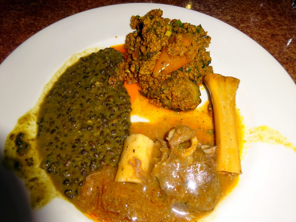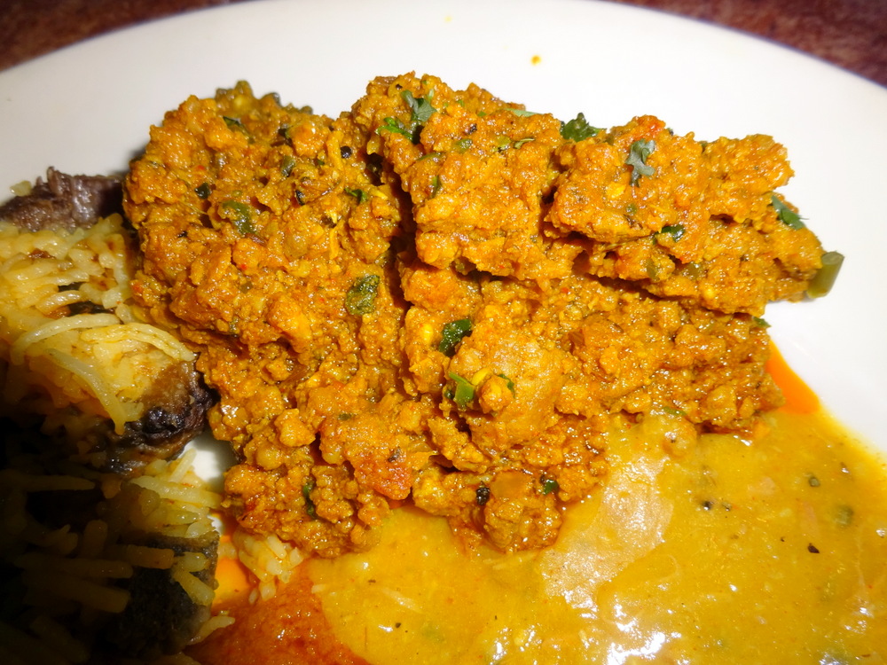 The Soupçon: Lamb Biryani for just a little Rice, and Haleem. I can take Haleem in small doses, to order as a solitary Main Course would be unthinkable as yet. Hector is many years away from enjoying Lamb cooked for days to a pulp. Today I took one step closer to that time. Actually, it wasn’t too bad. The Keema Karela was an instant – Wow! Dry Curry, Meaty, well Seasoned, Spicy, then there was – the Bitter Vegetable. This had it all. There would have to be more.
