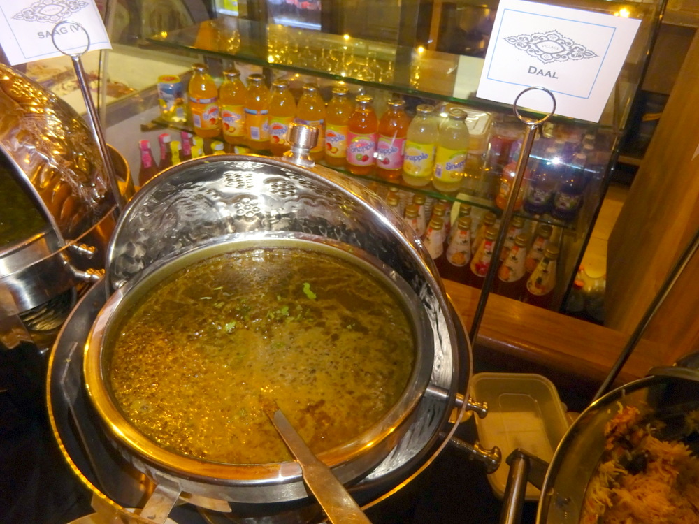 More Keema Karela of course. The Daal was simply labelled – Daal. Surely this was closer to Daal Makhani? Again, as a Side Dish, I love this stuff. I am reporting it as a Daal Makhani, if it wasn’t then it was quite simply the best Plain Daal, ever. The Shorva which accompanies Lamb Nehari puts me off ordering this except on the odd occasion where I can be convinced the Masala is otherwise. With no Rice or Bread on this round, it was a bit of a splash. When I had reached the end of the line of tureens, the Paya was only Shorva and Bones, no Meat was left. As Stuart had been broad-minded enough to sample this earlier, I thought I had better take the opperchancity. I mentioned to one of the Waiters that the Paya was in effect, empty. He promised to rectify this.