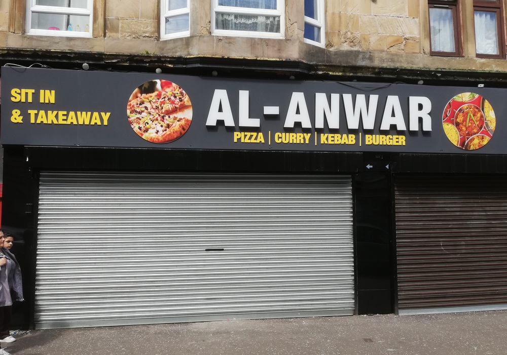 Driving along Calder Street, the newly restored signage for Yadgar Kebab House (148 Calder St, Govanhill, Glasgow, G42 7QP) stood proud. Kebab House – has been dropped from the main banner, however, the original logo maintains on what could be a new illuminated sign. Suddenly, the need for Aloo Gobi became fixed in the mind, Hector would return later after – mother duties – were fulfilled. En route to – Chez Maman – we passed what was Lasani Grill. That the premises were being refurbished has been observed in recent weeks, today – Al-Anwar – had replaced – Lasani Grill – … another case for – Hector Holmes.