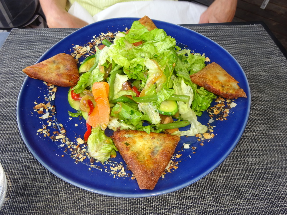 Ironically, at A Vista, our first chosen dining spot in Ajaccio (Corsica), Marg found – Samosa – on the Menu. Goat’s Cheese Samosa, something different.