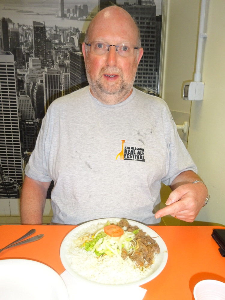 Heading to PAK Kashmir for Curry-Heute, we stopped to take photos of the fountain in the square. I could not help but notice the chap sitting at Pak Kebab where we ate last night. Assuming this to be Mein Host, over I went to show yesterday’s write up. Maybe it wasn’t him… Carry On Regardless.