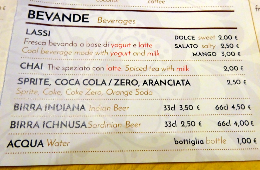 Hector and Marg were the first customers of the day, entering Tandoori (Angioy) (Via Giovanni Maria Angioy, 25, 09124 Cagliari, Sardegna, Italia) at noon. Tandoori is conveniently located nearby our hotel – Italia, but then so was Namaste yesterday. It’s as if Hector chooses his sleeping quarters with Bier and Curry as the determining parameters.