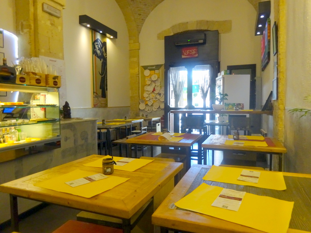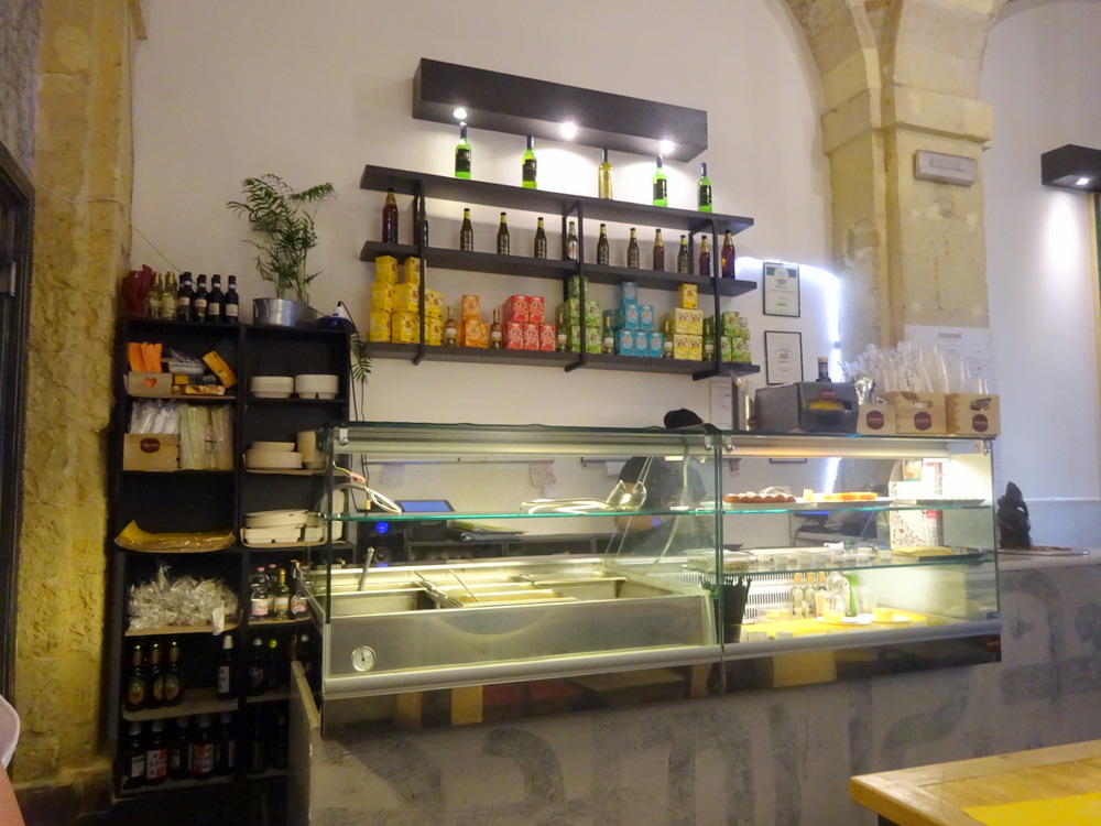 We sat and took in the basic surroundings. Paper plates were pinned to the wall beside the door presumably with favourable comments written on them. No crockery or metal cutlery here then. Has – Recycling – not reach Cagliari? Surely it’s more environmentally friendly not have single use plastic/paper?