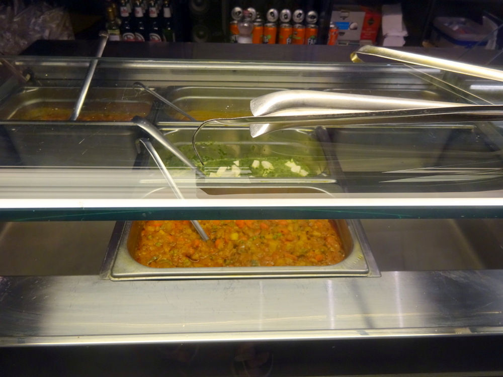 A display of Curry etc was slowly being assembled at the counter. The Vegetable Curry looked decent, i.e. not – Soupy. I was too early to see if this array would simply be scooped and served, or reheated in the kitchen.