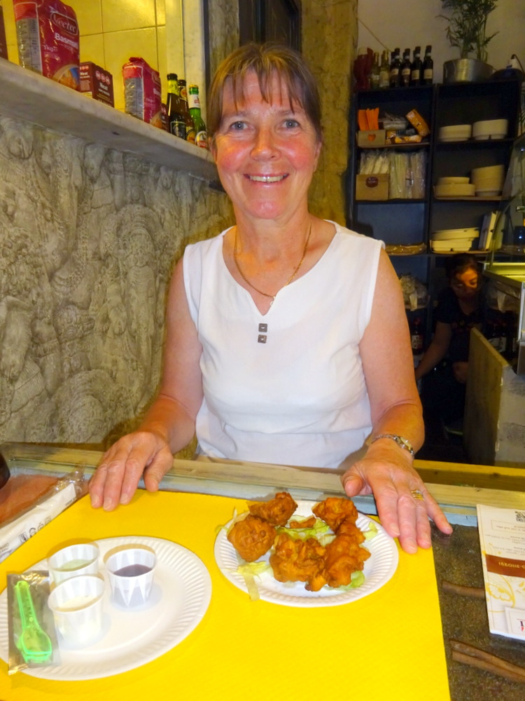 Today Marg would have Pakoras di Verdura (€2.50). Two 500ml bottles of Acqua Frizzante (€1.00) would complete the Order.
