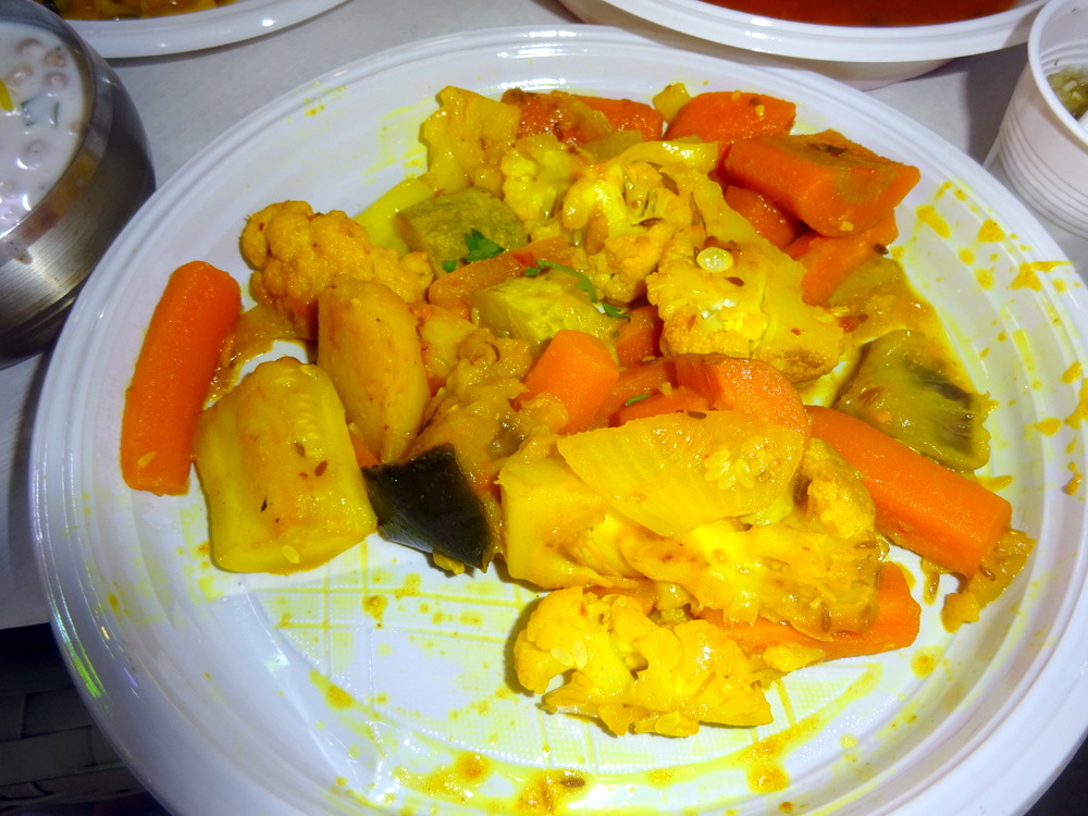 The three Aloo Gobi constituents were in the Mix Sabji: Potatoes, Cauliflower and Onions. Additionally were Carrots, Aubergine and what I took to be Courgette. There was a sense of Spice and Seasoning, but far from the – Wow – achieved in the Aloo Gobi alone.
