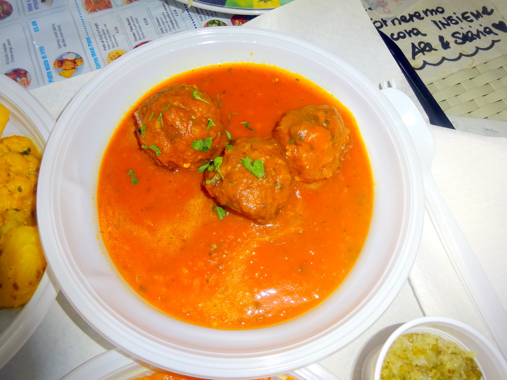 Pumpkin and Zucchini (Courgette) were listed on the Menu. So, not the Lamb Kofta with Palak which Hector loves so much. The Vegetable Balls were Soft but not particularly warm. They had an Earthy Flavour but lacked the hoped for Spice. The accompanying Masala appeared to have the same Tomato-base as served in the Agnello (Lamb) al Curry on Friday.