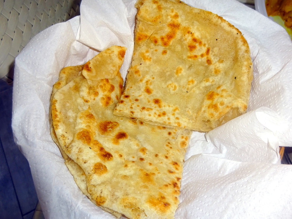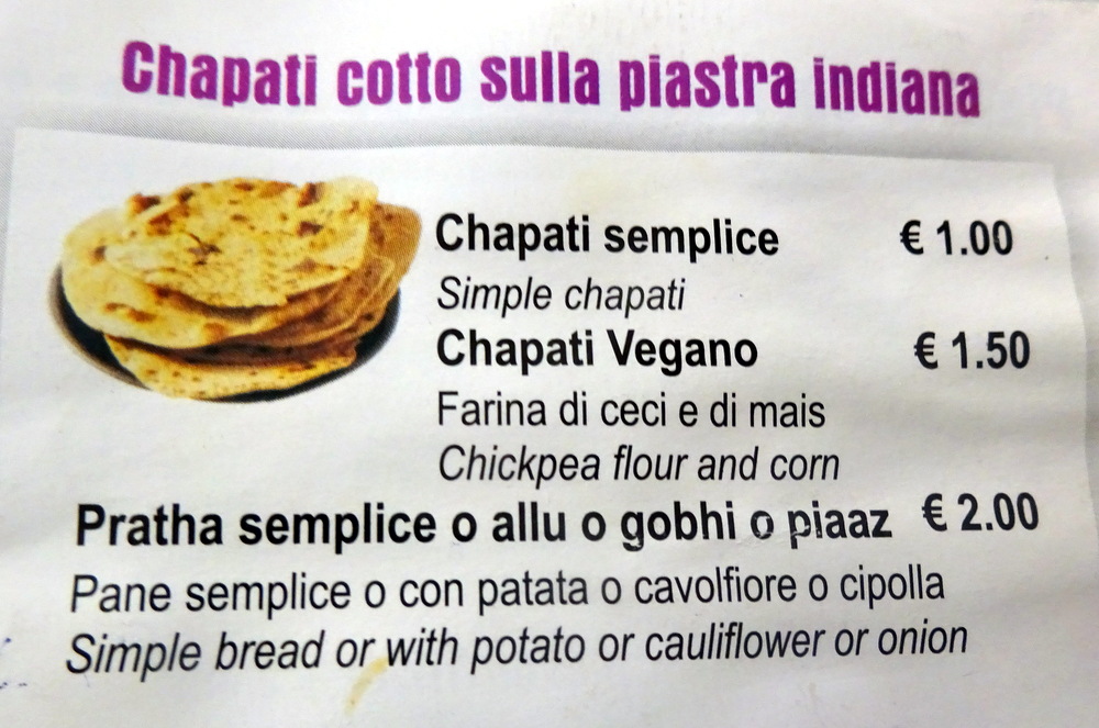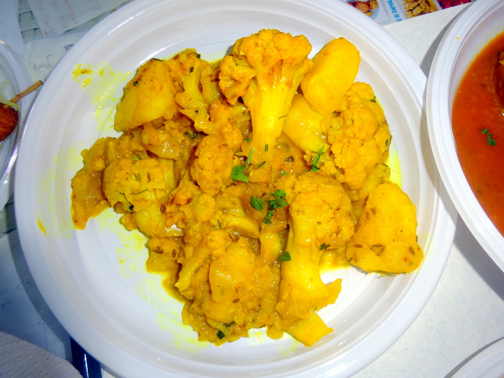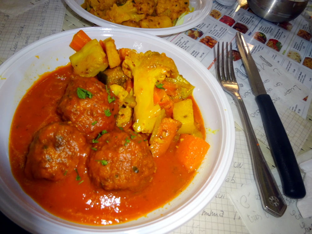 I had already planned my Order, and I wasn’t holding back. Allu Gobhi Masala of course, plus Mix Sabji (€4.00) because I was determined to have a Curry that was not – Soupy. The Kofte (€4.00) was a last minute replacement for the intended Dal Makhni (€4.00). Vegetables alone is hardly living, a Seekh Kebab (€1.50) should provide something – solid. Rice or Bread? On Friday, the Onion Naan did not quite impress, I decided to risk a – Pratha semplice – (2.00). Stuffed Parathas were available for the same price as Plain Paratha.