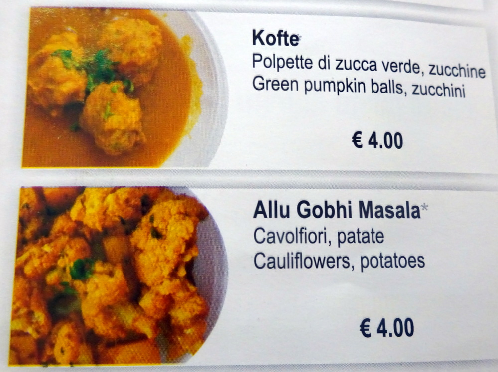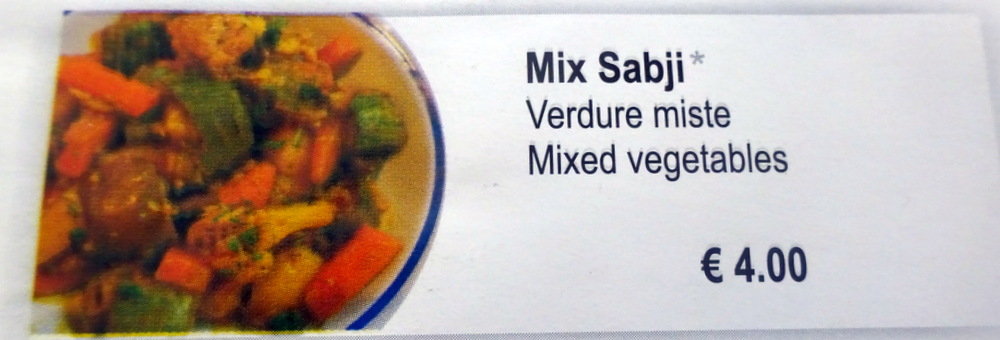 With an Aloo Gobi so impressive, or – Allu Gobhi Masala – (€4.00), as it is called at Namaste Indian Tandoori Food (63, Via Barcellona, 09124 Cagliari Sardegna Italia), the return visit was mandatory. Rather than just repeat the Order of two days ago, which Hector is prone to do to activate the – Curry-Heute Test – or – impress me again -, it was decided to explore more Vegetable options. No other Lamb Curry appealed.