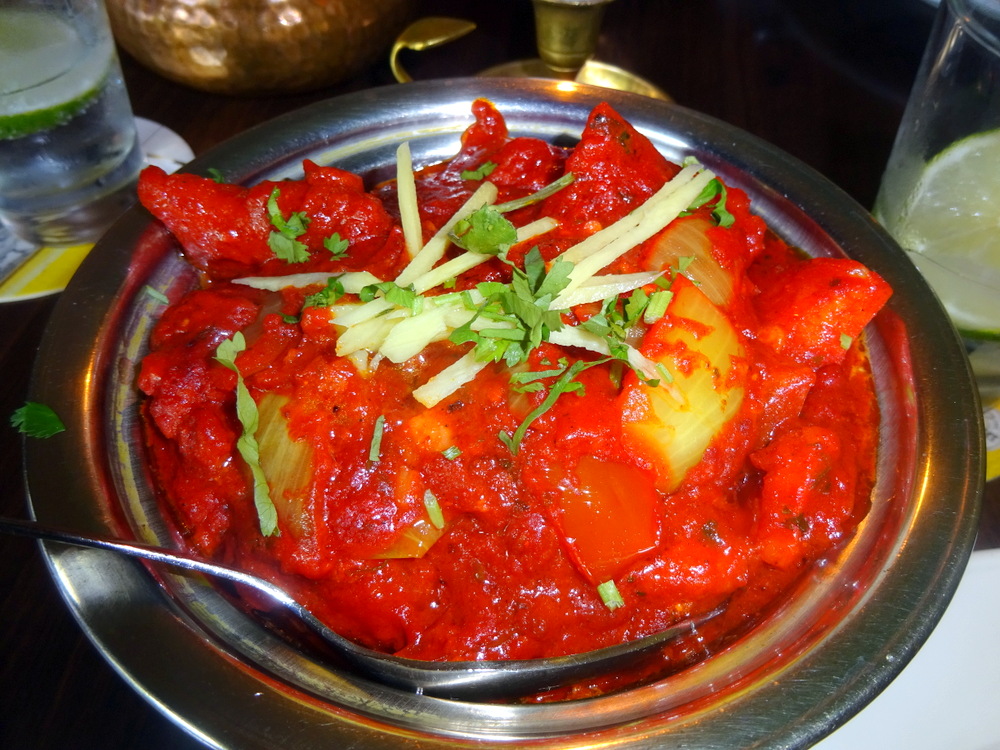 When the food arrived, I assumed it was headed to another table such was the quantity being presented. In addition to the Curry, a big puffed up Bread, and a Salad accompanied. I thought I was having my first ever – Dosa – but this was thicker than a Dosa. I looked it up – Bhatura – or in other words a big – Puri. The Rice was to share, there was, as ever, more than we could eat. Fortunately, this time, there would be little wastage.