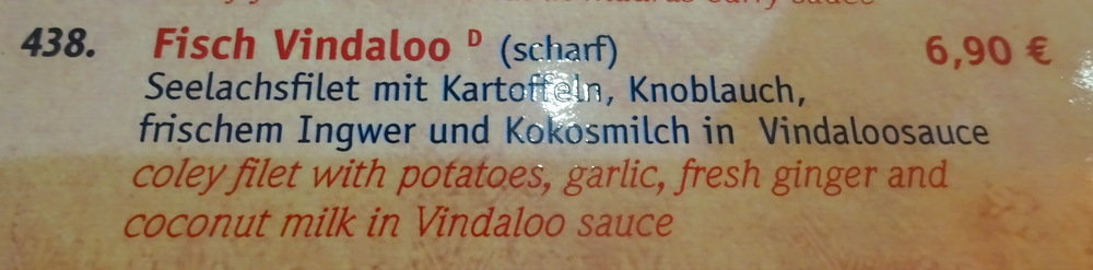 Having denied myself Meat for the past few days, it was time for Lamb Curry. I overdosed on – Seafood – latterly in Sardegna knowing that I can only serve it sparingly at Hector’s House. Too many – eyes – for Marg. I made the usual checks, Lamm Vindaloo looked like the best Hector Curry, as long as the – Paprika – could be withheld, otherwise Lamm Subbji may come into play. I noted that the description for Fisch Vindaloo was perhaps more suited to my preferences. Garlic and Ginger were mentioned, no – Peppers – and also – Scharf – was declared. Why do menu compilers not spot these inconsistencies? Why do easyJet enforce a strict – one piece of hand luggage – at some airports yet at Cagliari you can walk on with three? Hector may have to change his name to Victor (Meldrew).