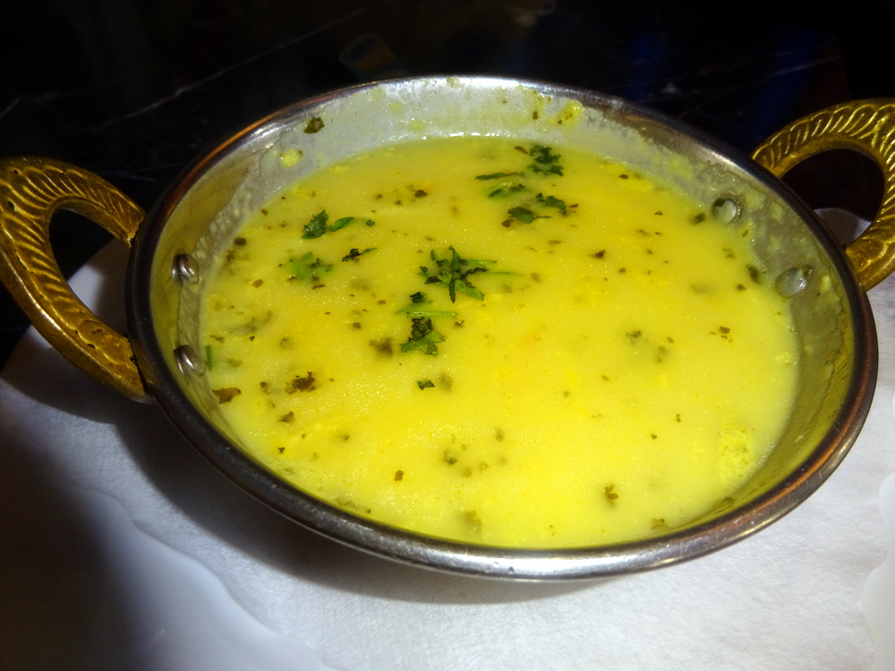The Soup was yellow, thin, and thankfully – hot. There was a wee kick, a tang, it was well-seasoned. I took half and passed the bowl to Marg. This was enough to titillate her palate. The Bhatura was still large enough not to be classed as a – Puri. As with yesterday at Chelany, this deep-fried Flatbread was well received.