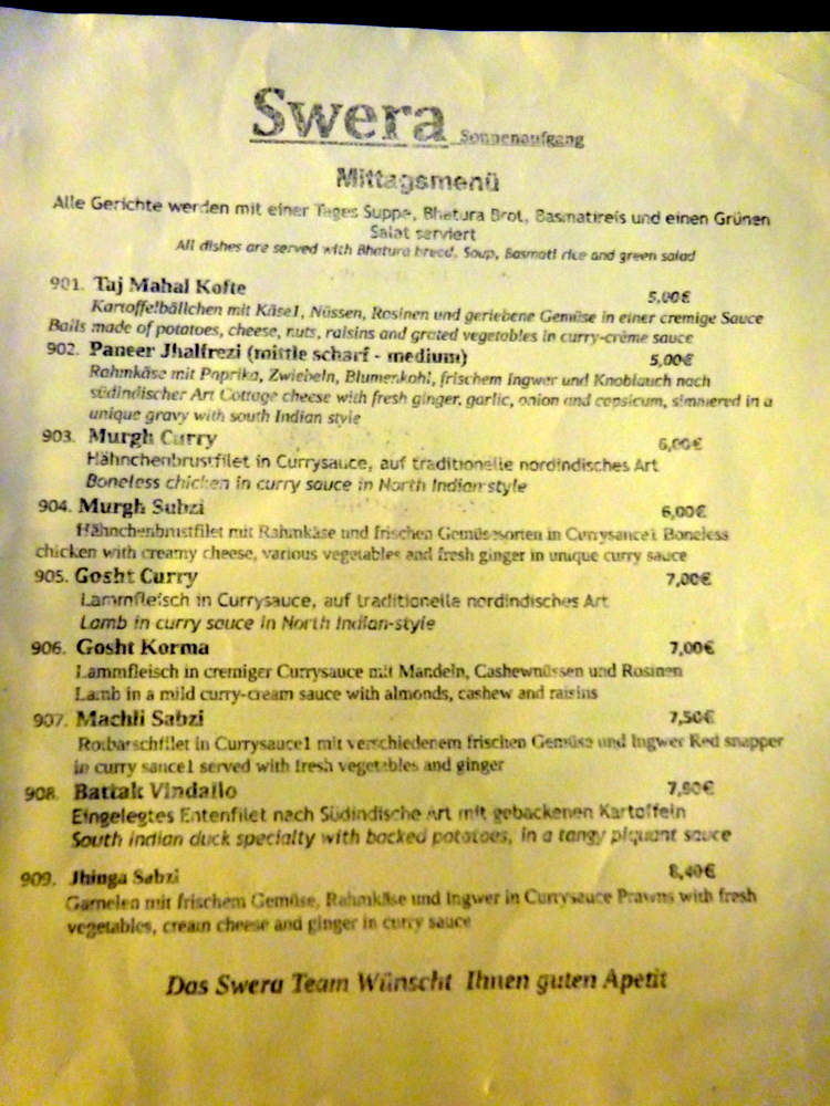 After the addition of two venues in Neukölln, today, it was back to Kreuzberg and familiar territory: Swera (Bergmannstr. 103, 10961, Kreuzberg, Berlin, Deutschland) for the final Curry of this trip. My first visit to Swera with Marg at the end of 2016 concluded with quite a statement: This is the Best Curry I have ever had in Berlin. The follow up visit two years ago led me to the same conclusion. So, nothing to live up to then.