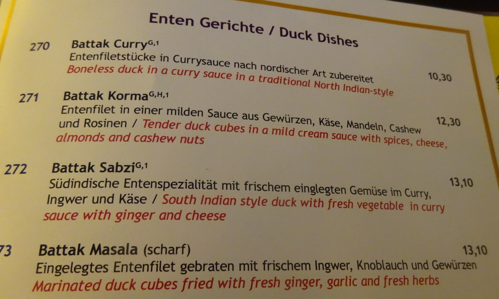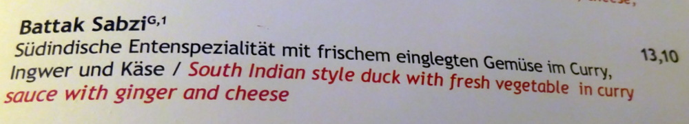 Having had Fish and Lamb in the past two days, it was time for something completely different – Battak Sabzi – (€13.10) fitted the bill, Duck and Mixed Vegetables. Sabzi has featured in both previous visits, more than just Meat and Masala, how Hector likes his Curry. As is the European way, this would include Rice and a Salad.