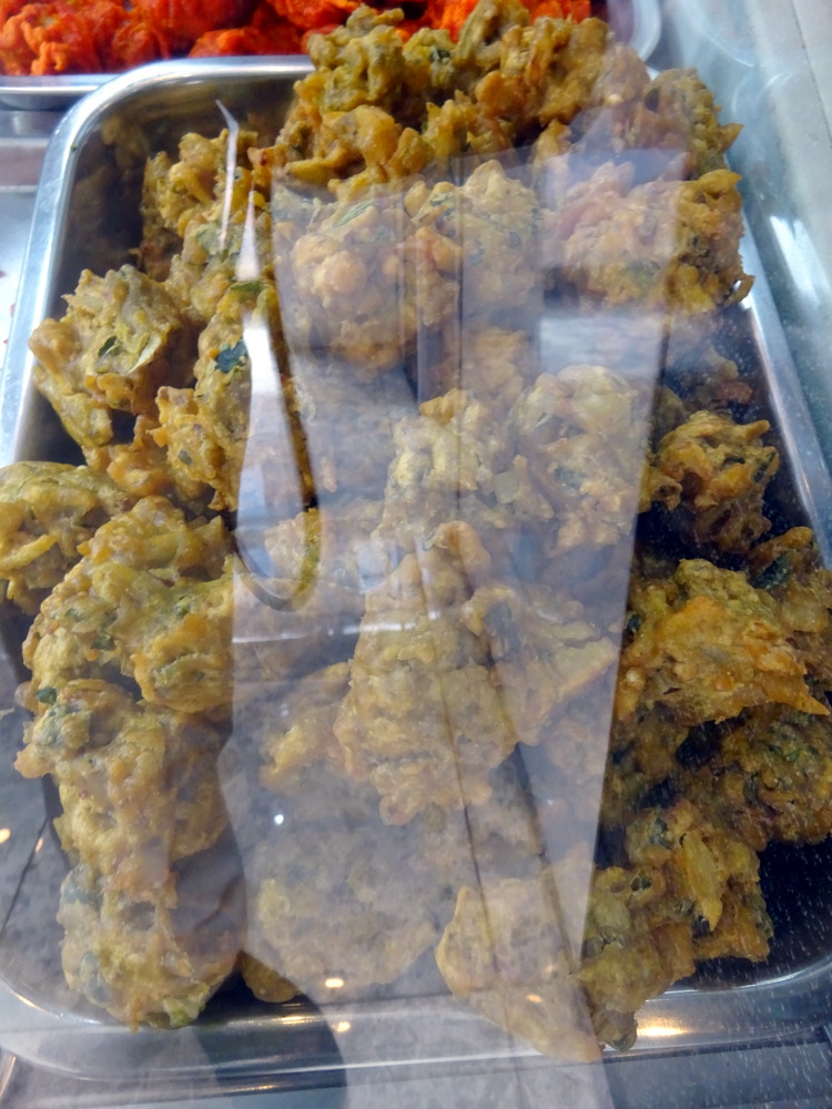 Reheated Pakora, so few venues attempt cooking the batter on demand. This was quite a plateful, between twelve and fourteen pieces, Marg estimated. One dip accompanied, but not the Raita that Marg prefers. She asked, it came in with some much needed napkins. The young chap who was assisting is still finding his feet.