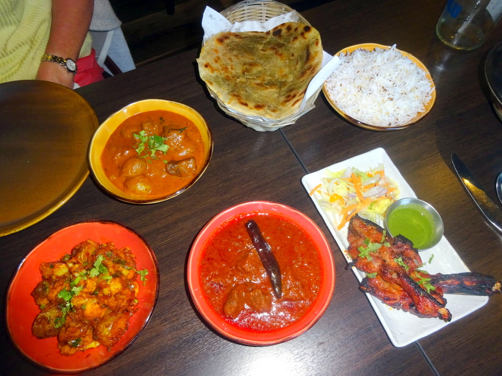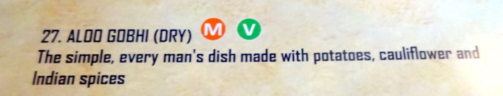There had to be Lamb Chops (£6.95), it has been a while, though Marg did have some at Namaste (Cagliari, Sardegna) recently. These would be shared. The description of the Rajasthani Laal Maans (£6.95) was magnetic – smoked lamb. Irresistible. But then, this was a first visit, so who knows what would come? Hector’s favoured Side Dish – Aloo Gobi (£5.15) had to be sampled.