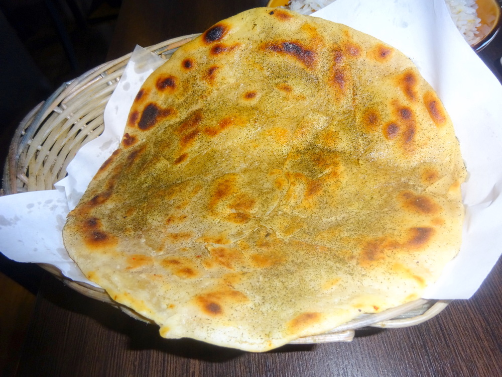 The Paratha was quite well cooked, Flaky and Layered. It might have been Softer. The Methi was visible, cooked in. This Paratha had potential, but look at the size. £2.50? It’s Flour and Water (with a bit of Butter and Herb). I note the same price is charged for a Plain Paratha and those with fillings.