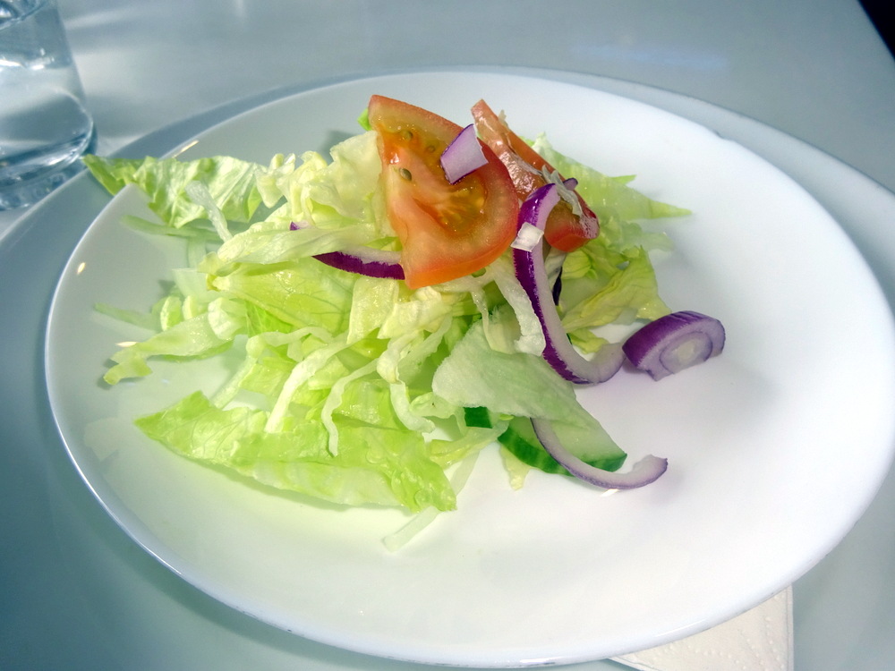 Ayaz brought a jug of water then a Modest Salad. I declined the offer of – Mint Sauce.