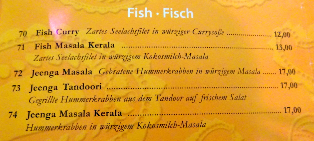 If there’s a better Fish Curry than that served at Indian Mango (Zweibrückenstraße 15, 80331, München, Deutschland), then it must be on a beach in Goa (India). I speak of course of the Fisch Chettinad (€13.90) which defines the perfect Fish Curry, yet this dish itself, as served here, has evolved in the more than a decade that Hector has visited Indian Mango. In the pre-Curry-Heute days, the Fisch Chettinad had much more Masala, then became drier and grittier. At some point it was dropped from the Menu, Lamm Chettinad (€14.95) remains, yet Hector has continued to have Fisch Chettinad every time there has been a visit to München. How many venues charge less for Fish than Lamb?
