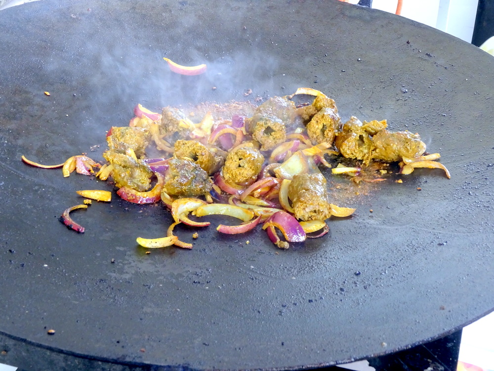 I watched the Onions being fried on the tawa, Spices and a Minimal Masala then being added. I have had Kofta Karahi which was essentially Lamb Seekh Kebab in Masala. This would be not far off.