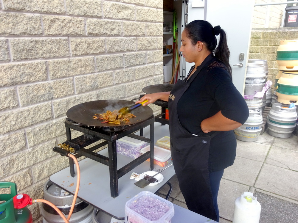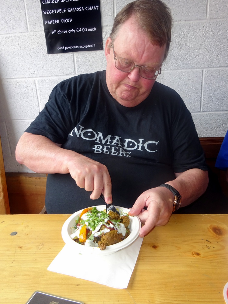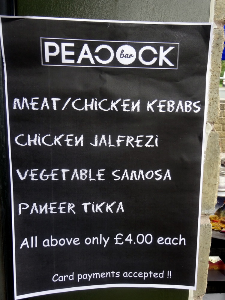 At the entrance to the industrial unit in which Bingley Brewery is located, a couple from the Peacock Bar (25 North Parade, Bradford BD1 3JL England) were setting up their cooking stall at the entrance. Hector visited the Peacock Bar in Bradford some years ago and was made aware, that especially on match days, they serve Indian snacks (gratis?) to their customers. Somewhere in the vaults are photos of the Peacock Bar. The menu was posted, Hector would resist. The Rickmeister predicted that I couldn’t. Hector was emphatic, until…