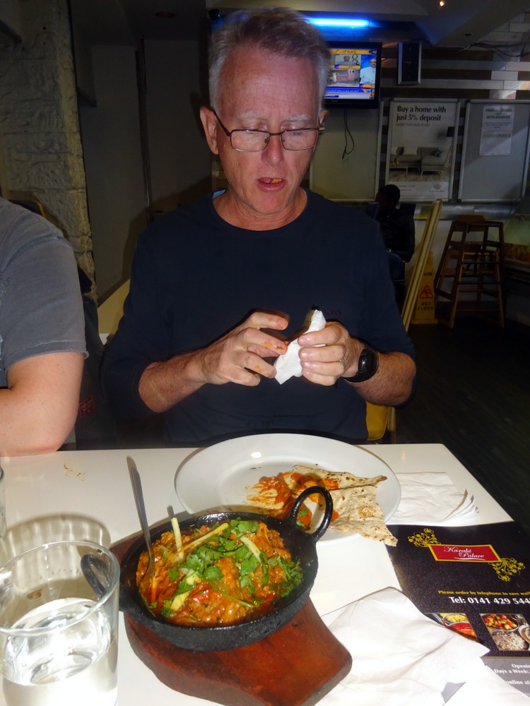 John insisted we go for Curry, I told him – the rule. When Marg arrived and declared that she was hungry, there was no going back. John, Jamie, Hector were driven over the Kingston Bridge, Karahi Palace (51-53 Nelson Street, Tradeston, Glasgow, G5 8DZ) was the destination.