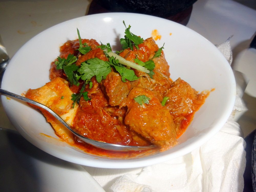 Served in a bowl, because it is not a – Karahi – this Curry looked too – Red – for Hector’s liking. However, this is what people who order such a Curry probably expect. The ratio of Meat to Masala was acceptable, this was not – Mainstream Soupy Curry.