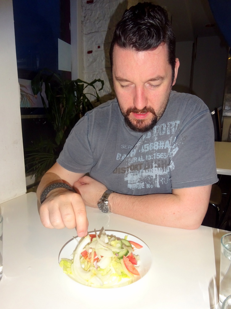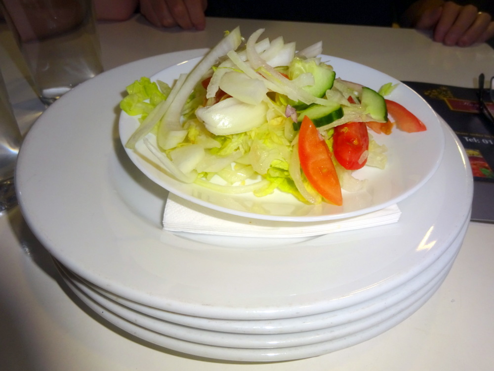 Jamie was all for ordering Poppadoms etc, I told him to calm down. When the Modest Salad arrived, Jamie tore into this. That kept him quiet, briefly.