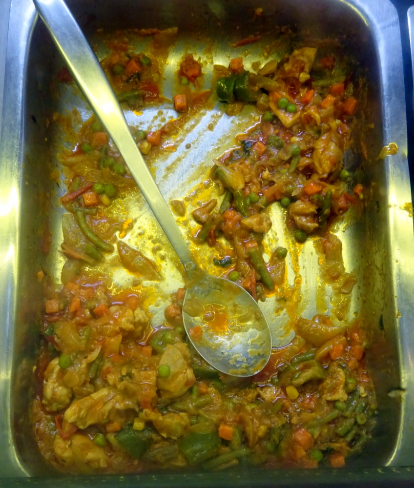 What was left of the Chicken Sabji suggested this had also been popular today. Eventually this was replaced by a new platter of Chicken Curry. Clearly the Lamb Dishes are all prepared to order.