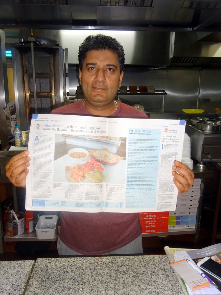 Ayaz produced a copy of – The Herald – supplement. He had been quite cool regarding the write-up on Karahi Palace from a couple of weeks back. Maybe now he appreciates the significance. I showed John and Jamie the reference to Curry-Heute and the certificate which sits proudly on the counter.