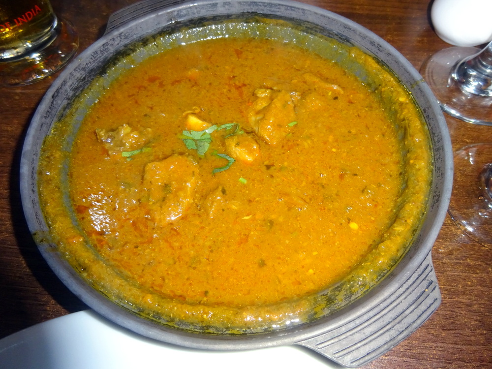 I was at the far end taking photos and so clearly heard – Multani Shorva – being announced as it was placed on the table. This was a case of – spot the Meat. I know if I had ordered this, I would have been disappointed in terms of its appearance. Thankfully Rocky had warned me off by presenting the – Soupçon, but not Howard and Tracey.
