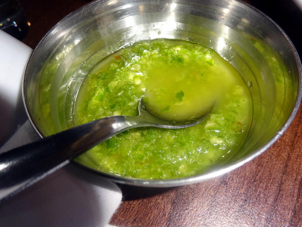With everything that was ordered, on the table, and photographed, well everything but my own Curry, Rocky played his master-stroke. A small pot of liquid Chillies was brought for those who wished to spice up their meal. Why more venues do not do this still puzzles. At a stroke it prevents the usual – it could have been spicier. Accompanying the Chilli was a Side of Daal, presumably the – Truckstop Dall – from the Special’s board.
